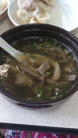 【位置】SOHO尚都南塔底商【环境】店面宽敞明亮,桌椅干净整洁。中午吃饭人较多店内较热不开空调只开风扇。【价格】人均15元-25元【味道】水饺的口味挺多的可选择的范围也很大。价格最便宜的¥4.5两/元,每两有6个。饺子皮有些厚馅也不大比较一般,中午吃顿饭解饱是没问题的。比较喜欢他家的牛杂汤价格便宜¥12 里面的料很丰富不像有些杂碎汤都是些边边角角的料,他家的牛心、牛肉整齐的切成一条一条,每次必点。…查看更多