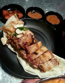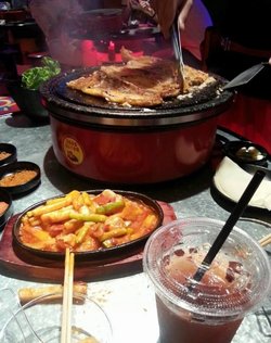 看到外面有人排队,自己是个好奇宝宝也来排队,队伍还好,不是很长的,十分钟就到我了,年糕赞的,味道很糯,但是不失美味的弹性,里面有股泡菜的酸辣味道,越吃胃口就上来了,石锅豆腐一般啦,觉得太嫩了,烤肉赞的,烤肉小哥烤的很嫩的,其实是比较外焦里嫩的那种,吃起来香嫩感十足,肉蛮划算的,一份88元,但是能吃到撑,两个人都有点吃不下了。…查看更多
