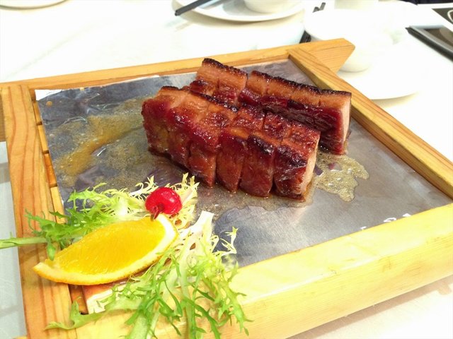 桃园明宴就在天河赛马场的西门那边,很大的一个招牌,一进入赛马场就可以看到了,这家酒家装修豪华,价格自然也不便宜。恰好我中了一份桃园明宴的试吃套餐,于是就去试试它家的风味如何。这里的服务不错,门口都有服务人员指引,看得出服务素质还是挺高的。我们的试吃套餐是4人餐,有驰名古香叉烧,上汤时蔬,川味酸汤鲈鱼,鲜贝肉饼蒸茄瓜,潮式蒸粉果,虽然不是很多菜,但是4个人刚刚好够吃了。其中我印象最深刻的就是驰名古香叉烧啦,首先被它的卖相吸引,叉烧是肥瘦相间那种,红油欲滴的感觉,让人忍不住马上夹起来吃。虽然看起来有肥肉夹杂在里面,但是咬起来是满口的叉烧香味,不会肥腻,咸中带甜,叉烧的口感喷发出来,真的不亏是它家的招牌菜,但是价格偏贵啊,一碟这样的叉烧,总共才12小块,就要68元了,幸好是味道不错。…查看更多