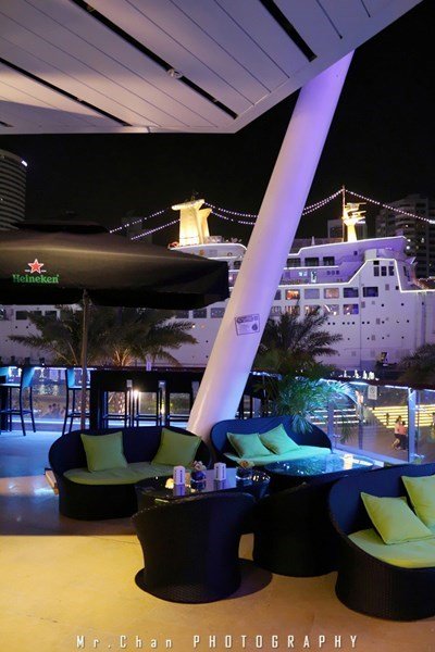 环境太棒了,L小姐生日带她去的,坐在沙发椅上吃着美食看着水秀很美好。位置在海上世界C区,明华号水面正对的那个商场就是C区。樽酒廊斜对这明华号,晚上在室内靠窗桌位和露天桌位都能看到水秀。入门是他们家醒目的樽LOGO和一张素雅的沙发,墙上还有一些旧上海女郎的海报。再往里走就是酒吧风的灯光和桌椅了,晚上也的确是酒吧,最喜欢靠窗的沙发椅桌位,很舒服。户外的桌位也蛮精彩的,适合友人小酌两杯谈天说地。彩虹蔬菜沙拉有西瓜、青瓜、苹果、火龙果、黄灯笼椒拼成的彩虹圈。缤纷的色彩给这道沙拉增色不少,各类水果既清爽又解腻。奶油蘑菇汤这个奶油蘑菇汤好淡,没吃到什么奶油的味道。燕麦南瓜汤南瓜汤比较好喝,很粘稠,加了燕麦感觉更健康。蜜桃奇异虾球这个就很一般了,没看到蜜桃奇异果呀,只有炸虾和橙子。香煎美国牛小排主菜之一的牛小排,差不多有碟子那么长,份量好大。煎的火候很好非常香,带肥肉的部位油脂特别香,大口吃肉感觉很爽,惊喜。烤鸭披萨烤鸭和披萨混搭,包着好奇心态选的口味,不过最后吃的和普通披萨味道一样。烤鸭是切很小的肉粒下去的,连皮都没了,只吃到肉,吃不出是烤鸭。马卡龙马卡龙虽然有点碎了,不过味道还是不错。隔壁涵咖啡和他们是同一个老板,马卡龙应该是隔壁的。东西看起来不是很多,不过要吃完还是很撑。…查看更多