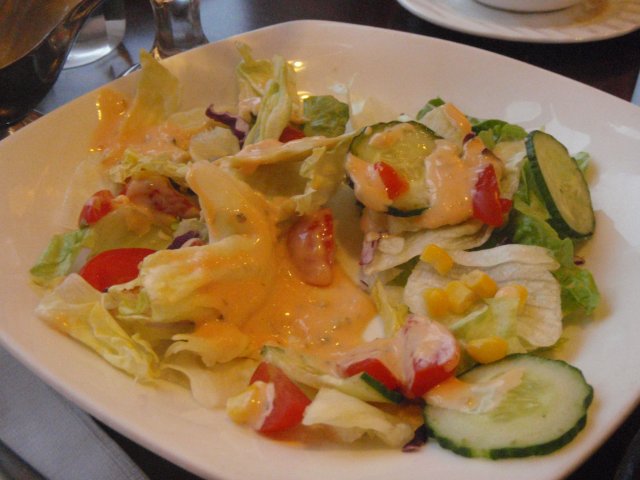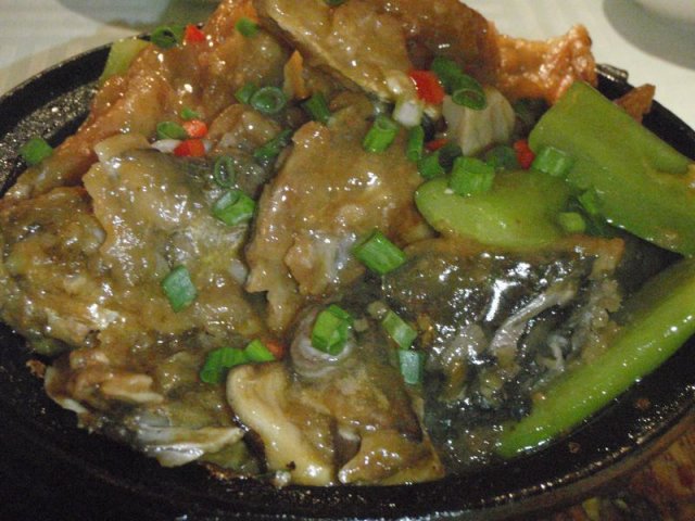 朋友一直说这家店非常难订位,东西非常好吃。这次终于有人订到了位子又可以6点钟去霸位,于是成形。 一楼的店面非常小,只是一道很狭窄的楼梯,如果不是熟人带路,可能我就错过了。不过6点半到的时候,下面就已经开始站人了,二楼等位的人更多。 其实整个餐厅格局很普通,也就比大排档好一点,装修都非常简朴,二楼只有6桌还是几桌,不过据说楼上还有两层。 比较郁闷的是点菜碰到一个新手,写个菜都要写半天,后来她自己都说我都不会啦,赶紧拉了个救兵。 点了脆皮猪手,白灼牛肉,冬瓜瑶柱汤,西芹百合,豆腐和不知道什么炸面。 第一个上的菜是面,真让人吃惊,面都过了油,咬起来就和干吃方便面一样,上次浇了番茄汁之类的配料。 白灼牛肉,肉片很大,很滑,下面铺了豆芽。一开始不知道酱料是什么,就把牛肉整个放下去沾,到嘴才发现是芥末,真是被阴了,