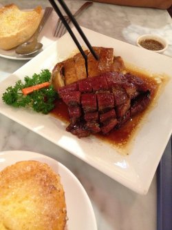 同事转正请客,特意从浦东跑来浦西吃这个。。因为是中午大家都不想用太多时间,就尽量都点方便吃的。我点了一份双拼烧腊饭,还有茄子煲,铁板牛排,苦瓜炒蛋。烧腊饭量比较足,我选的是叉烧和烧鸭,个人认为烧鸭比较好吃,不油而且很香。茄子煲有点油,但是里面的咸鱼粒很好吃呢,都消灭了。苦瓜炒蛋,苦瓜比蛋好吃。。而且一点也不苦。铁板牛排很嫩,无功无过。…查看更多