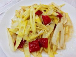 英桥大酒店他家环境还不错的,生意一般,我们5个人给了一个包房,挺好的,有独立卫生,我们点了笋干,一份量还挺足的,很新鲜,水灵灵的,很嫩,放了一点点辣椒,不辣,挺好吃的…查看更多