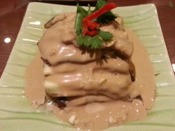 一次同学聚会再次举行,到得时候已经是晚上六点多了,不过不是周末,但是人已经特别多了,狭小的进出通道里坐满了人,店家要是能把等候区改进下就好了,来的客人都进不去了,幸好有个同学早到,占了位置,点菜的菜单是竹简和扇面,挺有意思的,川贝雪梨水十分抢手,已经点不到了,要了水果捞,和日昌的口味相同~点了奶酪,感觉奶味不是很浓,有点果冻的感觉~猪颈肉还不错,肉质挺好,椒盐双菇,炸的好硬啊,不脆,而且椒盐味道不浓,茄泥,没啥咸味,一般~整体感觉很一般的馆子,不知道是不是没点对菜,但是味道真的一般~…查看更多