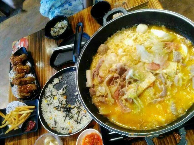 又发现左一间人气好旺噶韩国料理店,等位等到傻,而且觉得总体出品唔算好特别,所以应该都唔会有下次。餐厅环境同韩国街大多数店铺差唔多,都系木质台桌,座位其实唔少,但就系多人。团购噶套餐几抵吃,芝士年糕料理,好大一份,都系年糕,面条,大白菜之类噶,唔算太入味,不过吃得几饱,都算性价比高。…查看更多