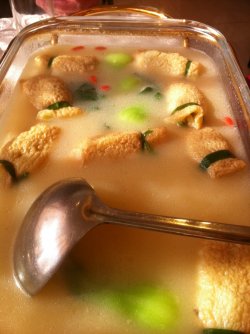 兔头啊兔头,北京出名的双流老妈,差不多5点多就人满了,兔头麻辣五香味,啊哈哈,各要了两个,很奇怪为什么麻辣的要比五香的小一圈,不贵那多汁的麻辣味道,特别的入味啊,肉也烂,虽然感觉不如东直门的那家兔头味道辣不过比那个香好多,五香的也超棒!再来写主打的菜,石锅青峰,这个味道很赞啊,里面土豆粉,青辣椒还有黄辣丁好吃哦!豆汤娃娃菜虽然不及豆汤豌豆尖好吃,但是那个娃娃菜真的是很烂,豆汤也很棒!鲍汁豆腐,这个一块一块特别像蛋糕,吃起来很嫩夹杂蛋黄和鲍汁的味道还不错,如果有小孩一定要,但是觉得鲍汁浆太浓而且味道稍淡。老妈拌面就是宜宾燃面,但是味道真的是很赞啊, 面条劲道,很正宗!呵呵看到每个基本都好想吃,再来一人得加兔头了哈哈!真的是很香!…Read More