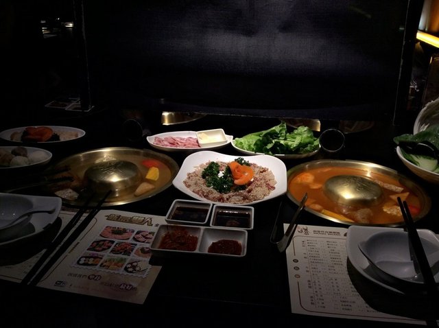 團購118元,肉超級多,雞肉,鯛魚,芝士丸,蟹子丸,雪花牛肉,台式香腸,豬頸肉,一盤雜菜,香芋,玉米,白菜,紅蘿蔔,香菇,生菜,2杯紅茶和2碗米飯,醬料也大概有6碟,中間是烤肉,外邊就是火鍋,雪花牛肉占鹽吃已經好夠味還能帶出牛味,其他的醬配不同的菜會不同風味,菜太多了到最後都吃不完 老闆的服務態度也好好哦…查看更多