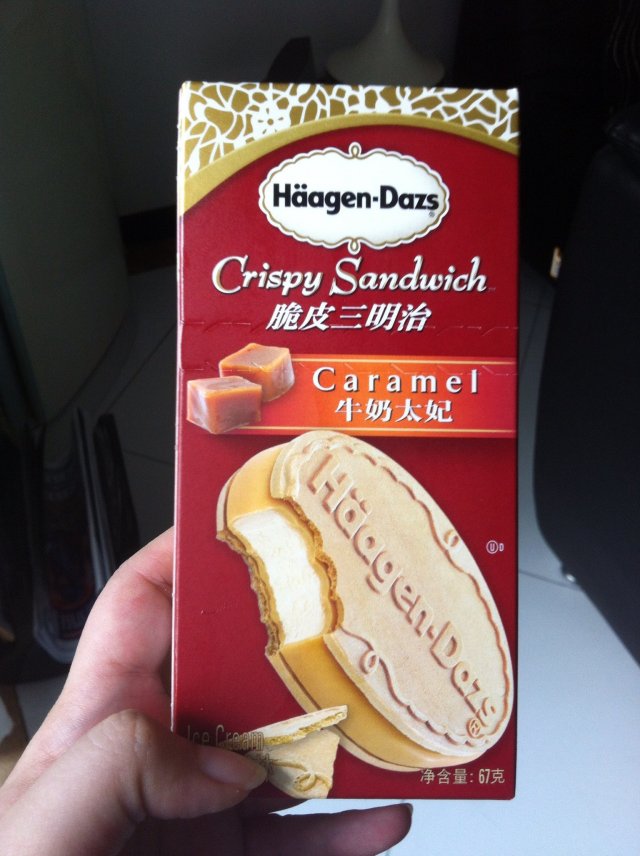 哈根达斯 哈根达斯 2013-04-24我最爱最爱噶系哈根达斯噶脆皮三文治雪糕啊!!!一盒36蚊!真的好正!有好多种味道,有抹茶(HK先有)、牛奶太妃、草莓、云呢拿、朱古力(HK先有)、曲奇(HK先有)~~HK买就仲好~~第一口味多,第二价格合理,为到20RMB一盒。我试过抹茶、牛奶太妃及朱古力味!抹茶的味道的确好香,但少佐牛奶噶香纯感。朱古力感觉一般般,吃不出特别。最爱就系牛奶太妃!夹住雪糕的饼皮好脆,但不松散!不会掉到周围系!然后包住雪糕的太妃脆皮好脆好香甜,而雪糕就好滑,好香!!所有搭配一起食就好perfect!!建议如果嫌牛奶太妃过甜就选择抹茶啦~~~…查看更多以上食評乃用戶個人意見 , 並不代表OpenRice之觀點。讚好分享哈根达斯 哈根达斯 https://s.openrice.com/KtbT0m0HKa500檢舉 張貼 評分4味道4環境3服務4衛生3抵食人均消費¥36