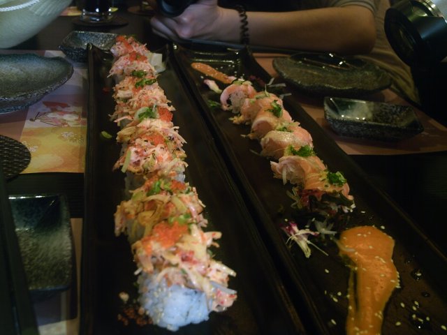 之前一直都对日本料理无感啊,觉得日本料理就是寿司,冷冰冰的米饭团有什么好吃的呢.结果吃了后有惊喜啊。火龙卷 /这个火龙卷听名字以为是火龙果做的的,端上来一看是红彤彤的,但是不是火龙果的红,是蟹子的红,蟹子吃起来qq的,还有一些鱿鱼丝,吃起来也是比较有弹性的,饭团口感很软很糯,一口一个,真的是非常的美味啊,推荐。炸虾牛油果卷 / /这个/炸虾牛油果卷端上来一看整个都是绿油油的,因为是日本菜,以为都是芥末,还吓了一跳,口味太重了,后来发现绿油油的是牛油果,牛油果吃起来还真的有点像牛油,滑滑的,有一点点的甜,炸虾加上海苔,多了一份海鲜味道,好吃。鳗鱼鸡蛋卷,端上来咋一看还以为是蛋糕卷,外面看着就像是芝士蛋糕,不过黄黄的不一定都是蛋糕也有可能是鸡蛋,吃一口非常的嫩滑,味道也是很鲜美的,中间还夹着鳗鱼,更加美味。安格斯西冷牛薄烧,牛肉切得薄薄的,包裹着一小卷的金针菇,牛肉比较的有韧性,金针菇也是比较有纤维的,吃起来整个感觉比较有嚼头。日式薄饼,端上来一看看到上面洒满了一层鱿鱼丝,看着很有食欲,本来以为是想披萨一样的味道,结果发现其实是馅饼一样,中间还夹了好多的白菜和鱿鱼,味道挺不错,材料足。番茄肥牛拉面,肥牛真的挺多的,而且味道很不错,酸酸甜甜的,口感也很嫩滑,面条也弹牙,喜欢。…查看更多