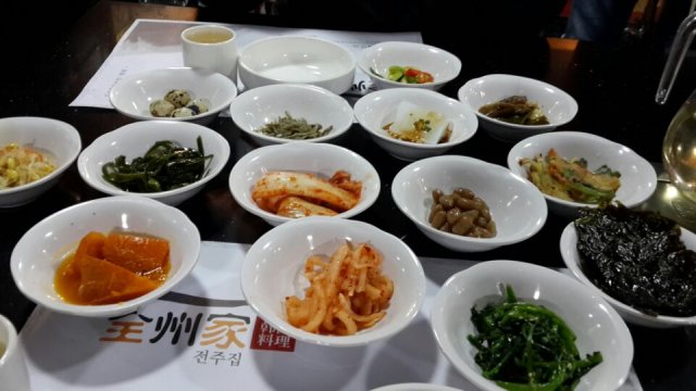 中午时经过无咩人帮衬,估唔到夜晚去超热闹,仲要等位哦~!点完菜就即刻上小吃啦,总共有成13碟,而且吃完可以再加!而且第一次见到有紫菜的,泡菜同西洋菜都好好味。炒年糕,好辣啊,不过有好好味喔,真矛盾。韭菜饼,不过不失啦。韩式版面,纯粹系睇“星星”的时候见到想吃的,不过其实一般般,冷面好吃d。…查看更多