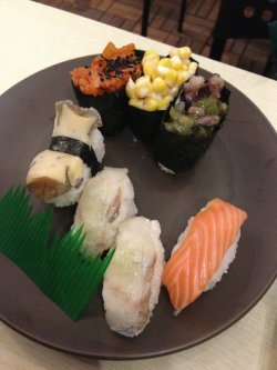 乌冬面有点小贵 也是36有酱油和咖喱的 要了一份酱油的味道很不错 面很弹滑 酱油味不是很浓 刚好这个是团购的寿司拼盒 原价32 团购价只有5.9真的是超值到爆 生鱼*2+三文鱼+北极贝+甜虾+中华海藻+玉米沙拉+紫薯+泡菜还贴心的送了一个铝箔碗用来装酱料生鱼寿司三文鱼寿司北极贝寿司总之环境不错 寿司很好~价格还可以值得推荐的地方 人均消费60左右…查看更多