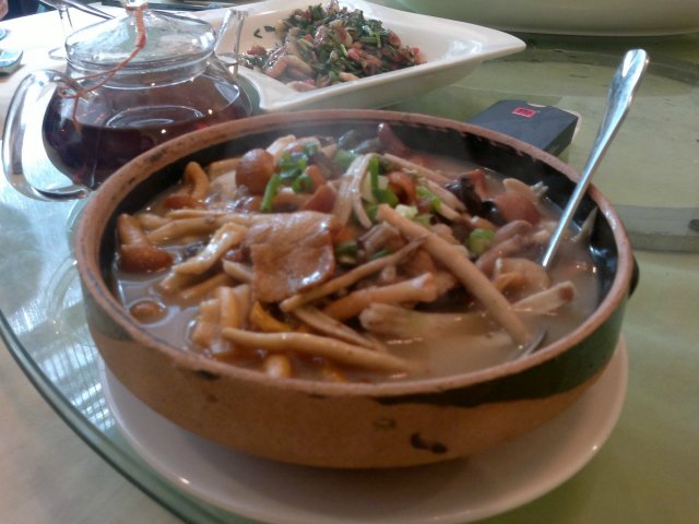 朋友请我来这里吃饭,感觉这里的环境挺不错的,服务态度也挺好。这里是以山东菜为主的,都是很大腕的,看来北方人都爱这么吃呢!朋友一桌就给我夹了个萝卜丸子,好大的一个啊,咬下去,好多肉,里面有萝卜丝,散发着浓浓的萝卜味,口感很松软,味道挺好的,就是太大个了,我平常不吃这么多肉的呀;面疙瘩汤,里面的面疙瘩很滑很软,汤里的番茄有一点淡淡的酸味,感觉比较清爽开胃。…查看更多