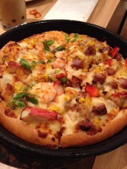 参加微信活动得了烤鸭,来附近的金百万品尝一下。感觉现在吃家常菜的人可能少了,六七点钟,人还没有满,不用等位,直接有地方。精品烤鸭看着真是高大上,高高落着,最上面有加热的饼,下面是甜面酱、黄瓜条、葱丝等作料,两盘最经典的肉和皮一起的鸭肉,还有最早上来的几片皮是蘸着跳跳糖来的,不过略微有点油腻,没有鸭肉好吃。我喜欢吃甜,就点了小吃炸鲜奶,很甜,只是吃太多也会有点腻人。其他人喜欢吃辣,点了经典的毛血旺,很辣有点点麻,里面东西品种不少,午餐肉、血豆腐、肥肠应有尽有啊。…查看更多