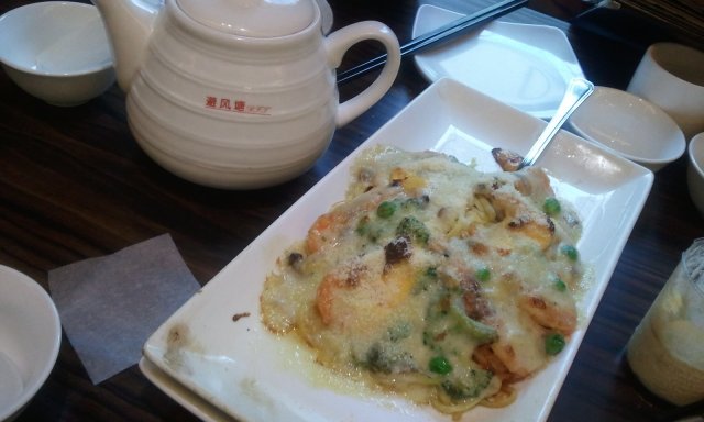 避风塘最近新出的一个芝士中虾伊面我觉得味道蛮好的,做法有点像是焗面,上面还撒着一层芝士粉,加上焗面里边本身就有芝士,吃起来的时候就觉得芝士的味道相当浓郁,而且还能拉丝,里面还有青豆、西兰花、虾仁肉这些食材,其中的面条采用的是那种宽面,吃起来质感比较软,吃完之后满口的芝士香味很过瘾。…Read More