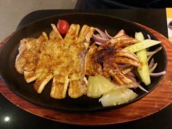 微博中的奖,二人餐,地点系5号停机坪,于是周末带上小盆友专门去消费左拒位置系三楼美食区,我地去得尚早,所以大把位可以选 ,服务员非常热情,唔会因为我地是来吃霸王餐的就冷眼相待~~二人餐都丰富的,有烤鲜鱿一只,土豆泥沙律一份,双拼披萨一份,杏鲍菇培根卷一份,冰啡一杯,红豆布丁奶茶一杯1. 烧鲜鱿:成只烧好用只大叉叉到你面前的铁盘,吱吱声,又香又好看,鱿鱼很嫩,就是偏辣左少少;2. 沙律:一般般,胜在份量多;3. 双拼披萨:双拼可自选,我地选左巴西烤肉同海鲜,呢个非常赞,满满的芝士,浓浓的肉香,香脆的饼底,非常好吃;4. 鲍菇培根卷:小吃,菇鲜甜配上咸香的培根,两口一个,过瘾;5. 冰啡同奶茶味道可以,一大杯,吃完甘多热气野饮番杯补下水份。另外还点左个海鲜焗饭同肉酱意粉,都是18蚊,相当大份,搞到最后要打晒包………查看更多