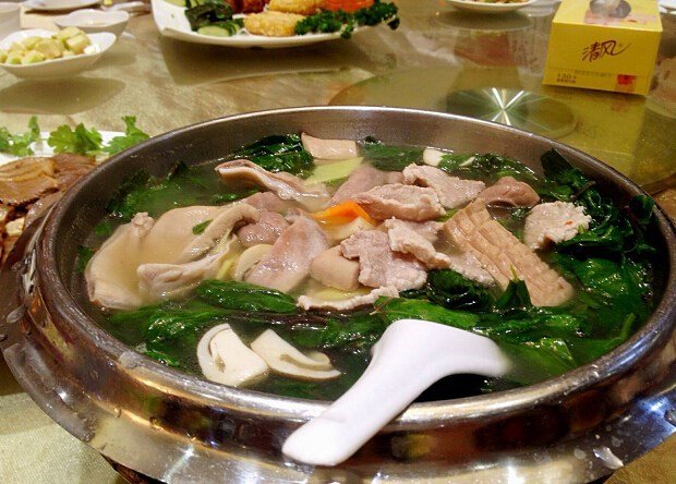 天气炎热的周末,天气炎热的大中午,二十分钟车程转到了华侨城创意园,因为OpenRice这个月的神秘饭局选在了这家东北私房菜,很荣幸参与到这样的饭局。东北菜吃过不少,这家应该算是东北菜中的白富美。环境很讲究,带有俄罗斯风情,仿佛真的置身哈尔滨的中央大街。服务员MM希着围裙,有点俄式洛丽塔的感觉。餐前吃水果,有益健康。决明子茶,香而解腻。东北大拉皮,东北菜必点项目。啥叫色香味俱全,色彩缤纷,麻酱浓香,美滋美味。我最爱的东北菜,锅包肉,没有之一。很大块,堆叠起来在盘子里很好看,秀气的妹纸看到这么大一块不好意思夹,于是我默默吃了好多。不过味道不如安天民的,虽然看起来很过瘾。俄式肠拼。肉肠拼盘满足了我们想多试几种口味的愿望。旁边搭配了酸黄瓜,即是点缀,也是解腻,这样的搭配很不错。秋林烧鸡,半只48元。鸡皮几乎要掉了,鸡肉很香,肉质还算嫩滑,口感不错。下饭下酒那是相当好啊。大块肉组合,集猪蹄和酱骨架一起,大块吃肉的感觉很过瘾。肉肉很香,卤得很入味,猪蹄被炖煮的比较烂了,软软的皮,还好不肥,所以也不会很腻。农家杀猪菜。酸菜炖的,里面有大筒骨,猪血,猪肚,猪肠,顺便还有猪肚猪肠那种特有的味儿。。真的是好酸爽。。可以断定,店家绝对不是用冒着热气的猪肠做的。葱爆羊肉,不知道算不算是东北菜,整体色泽诱人,大葱香香的,羊肉稍微炒老了一点,很愉快的一次聚餐,感谢OpenRice,感谢天感谢地。至于东北菜,我还是更喜欢接地气点的。对了这家门口有马迭尔冰棒卖哦。…查看更多