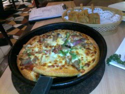 七夕因为梅花,只能去必胜客吃大餐啦!他们生意总是那么的好,要排队呢!不过时间不长就进去啦!大餐我们来了,呵呵! 现在必胜客天天半价,所以有的东东蛮划算的!我最爱的是海鲜棒,真的好美味的!披萨只是一般般的,饮料觉得很浓的喜欢的。饭后甜点是提拉米苏,真的感觉苦呢!还是自己不习惯呢,觉得甜甜的比较接受呢!七夕的大餐还是美味的!