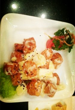 要去对过的好乐迪唱歌,去之前先随便吃点~三杯鸡 49元 基本上鸡肉都是中翅 味道普通 菠萝油条虾 51元 这个菜很多店里都有 但是挺不错的这个菜 值得一吃台山猪手煲 69元 全是皮啊~~~大爱啊~~~鱼香茄子煲 38元 普普统统 味道可以~红豆牛奶冰 27元 这个是这个店的特色 大冷天吃冰 爽! 坐位不大,餐桌间的距离也狭小。服务员很热情,会主动查看每桌点的菜是否上齐或催。菠萝油条虾还是不错的,看上去量不多,但也够吃。其它菜就没有留下特别的印象了。东西中规中矩,亮点部分不多,但是也没有怎么差的。两方面是显少的,对于胃口大的要吃饱有点难度。毕竟身处港汇里面,等位是避免不了的。…查看更多
