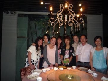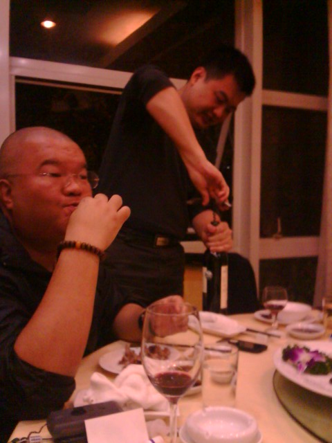 按照古人的标准,君子尚且要远离庖厨,何况王子乎?“王子下厨”,你见过没?其次一踏进它的大门,就是伸手不见五指的感觉,而过道上星星点点的“非典型烛光”,仿似梦游太空一般,特别是登高之后,更像云中漫步,唯恐一脚踏空。今天,我便抱着这两个疑惑,被引进到这间昏暗的房间中。今晚带什么酒,事前也曾头疼,照着下面的菜谱做了一番功课:柚子番茄泰式酸辣凤爪泰式咖喱炒蟹螺片捞私房鸡海港小炒皇果木烟熏牛扒松茸菌豆腐滑鸡片沸腾鱼巴蜀猪手王子炒饭上汤南瓜最保险的莫过于拿一支微甜起泡酒,管你川菜的辣,还是粤菜的鲜甜,都能搭个边。不过正巧手中没有就手的起泡酒,于是拿了支我自己也没喝过的西班牙利口葡萄酒。但此举属于“冒险”,首先是轻重未知;其次是15度的酒精度对MM来说是否偏高;最后一点利口酒通常餐后甜酒,餐中配菜是否会太甜,也是个问题。未几,房间已聚齐了七位美貌如花的美女,恰似七仙女下凡来,人面桃花,香鬓衬映,顿觉这餐厅气氛营造确实别致,而装修、用具当可谓以“精致”二字来形容,给我留下更深刻的印象的还有餐厅张经理递过来的那张黑色的小名片,精致得好像美女裙角上的补丁。到此时我方才醒悟这番“王子下厨”,实属应该!:)开饭喇,美女当前,当然要礼让一下,且听我慢慢道来:柚子番茄:据说这是日本来的,有柚子的香味,我没来得及吃,就不见了。:(泰式酸辣凤爪:开胃的餐前小菜啊,酸酸的,微辣,爽口,不错。就是拣了“鸡爪”丢了 “番茄”。泰式咖喱炒蟹:原来做绅士是有代价的,等我准备试试这盘东西的时候,只见盘中已经只 有蟹壳了