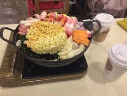不知道为什么一下子流行起来这个,就跟我自己在家做的方便面+鸡蛋+火腿类似。这家的服务好而且一些细节比较有特色,上来的火锅造型很好看,搭配好看让人很有食欲。牛肉片应该是冷冻的,各种鱼丸,肉片,小火腿,芝士年糕,作为主食很丰富,但是蔬菜有点少,就那么几篇胡萝卜一点菜叶。另外一种芝士火锅,配的芝士很浓厚但是不腻。两个人的话一般一个套餐就可以了,两个女生有可能吃不完。如果拿不准可以要不辣的火锅,如果想尝试辣,可以要辣酱再往里面添加。…查看更多