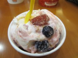 今年老公公司发的冷饮券是酷圣石的。所以来来回回也吃了好几次了。 我最喜欢吃的是芝士蛋糕范特西。 冰激凌球是芝士口味的。 再加上草莓干和冻蓝莓, 芝士+酸酸的水果味道。 是我平时吃不到的。 只是现在都看不到店员表演甩球了。 也不唱歌了。 其实我觉得看他们表演还满带劲的, 现在不表演,真是可惜了。 …查看更多