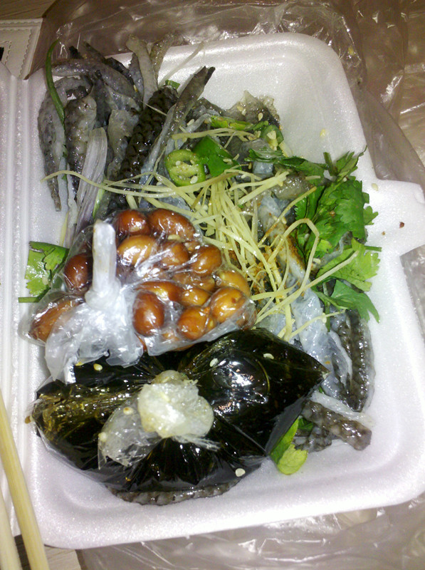 一时间想吃便搭好几站地铁过去买,说真的,陈添记的鱼皮说不上很好吃,但是有些时候,又日日夜夜想着啥时候能吃上一盒子~大概,这就是习惯吧~穿过另外一家“山寨”的店去买~“山寨”的店啥食物都有得卖,而陈添记,就仍然只有鱼皮、猪肠粉和艇仔粥。老板依然在门前收钱打小票,不过没有客人来买的时候,老板也会充当一下服务员~买了一盒鱼皮,特意叫老板不用捞好,回家自己捞的~没有捞好的鱼皮就是白白的没有味道,上面铺着姜丝和葱花,炸好的花生跟酱汁用塑料袋装好放里面的。自己捞也很方便了哈,一边捞一边吃,鱼皮很爽脆,酱汁的味道刚刚好,就是爱这个味!…查看更多