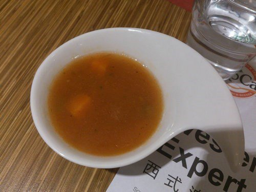 卡撒浓汤,这家真的很有童真的店,环境很好,有欧式的那种高贵典雅的感觉,这里的西餐味道做得一般般,价钱不贵,但试试也无妨。牛肉罗宋汤,因为要的系三人同行的,所以那汤的分量真的很细的,味道还可以的,酸酸地,有番茄的酸味,也有牛肉的香味,还不错吧。意粉的分量也蛮大的,一个人吃不完的。…查看更多
