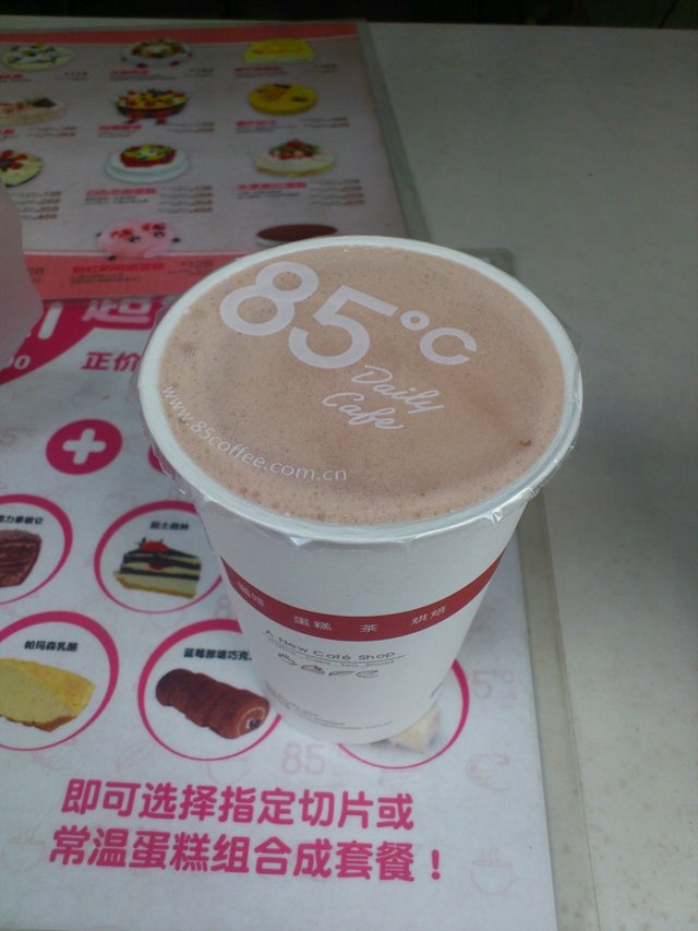 85度C 85度C 2015-01-30江南西这家分店应该是之前见过的分店中最小的吧,只有一个小小的门面,连桌椅都没有吗?餐点的提供也是十分得少,只有一些蛋糕,而且每款都只有两三件的,明明是早上的时间啊,但那些蛋糕给人感觉会不会是隔夜剩下的。最后还是没有选蛋糕,选了一杯巧克力奶茶,还好这个是即点即做的,奶茶的份量还是不错的,奶茶味道不会太甜,可惜就是巧克力的味道太淡了。虽然对于产品满意度一般,但是店员态度挺好的,制作速度也不错。…查看更多以上食評乃用戶個人意見 , 並不代表OpenRice之觀點。讚好分享85度C 85度C https://s.openrice.com/KtbT0m08OOE00檢舉 張貼 評分3味道2環境4服務3衛生2抵食用餐途徑外賣自取