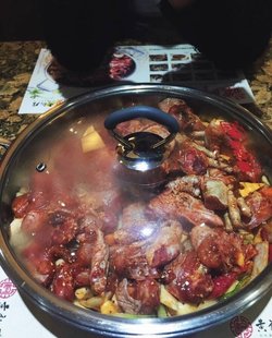 在黄记煌吃的组合锅,里面放了鸡翅,牛肉,牛蛙,鸡肉,还有莴笋,土豆,金针菇,辣椒,味道非常的辣,边焖煮边吃,鸡翅非常的好吃,鸡肉很嫩,吃起来有种肥美的感觉,牛蛙蛮爽的,虽然是一段段切开来的,但是牛蛙肉很细嫩,莴笋也很入味,这家的菜都量很大,所以性价比上来说是很划算的。…查看更多