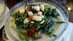 清明节的时候,去了元大都城垣遗址公园去看海棠花。到了中午时分,就在附近找了一家餐馆用餐。这家餐馆叫做‘西江美食舫’,经营的应该是江西风味的菜肴。我们一家三口,点了3个菜,其中2个都有汤水的,感觉有些重复。那道春笋,味道比较清淡,笋很嫩,吃起来很不错。 而那道豌豆尖的菜,就不行了,感觉有些老,有筋不能吃下去的。 那道石锅鸡,味道还是很好的,鸡肉很嫩,但那一大锅并不都是鸡肉,里面有很多的红薯,味道倒是不错,咸淡适中。…查看更多