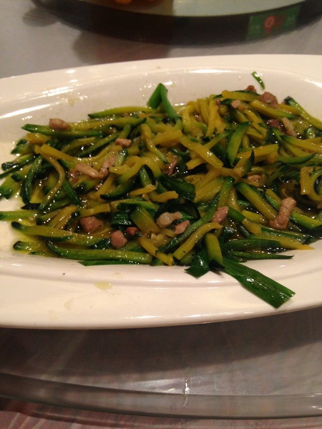 环境不错,吃饭在楼上,楼梯旁边很多鲤鱼,好看,不知道能不能吃。小炒南瓜丝,南瓜是青色的品种,切成细丝,和肉丝、韭菜一块儿小炒,味道很不错,这类的南瓜虽然没有黄南瓜糯,但别有一份风味…查看更多