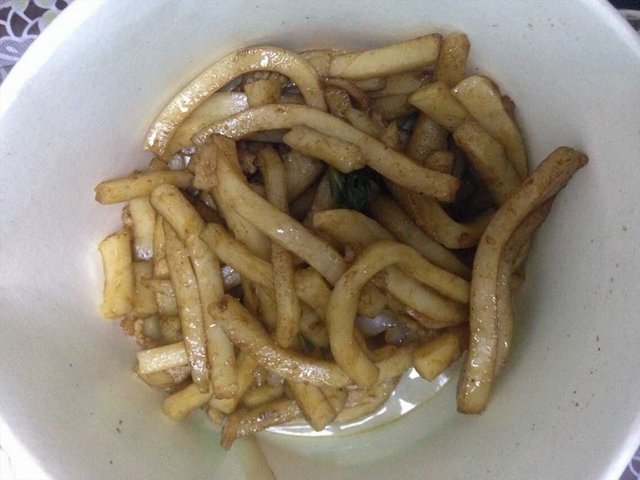嵊州的年糕远近有名,每次都必点汤炒年糕。这次换了一个炒年糕,年糕像是手工切成,软糯适中。肉是细细的,量不多,但好吃,没有一丝肥肉。青菜也着实的少,虽然嫩,但一炒,就缩水很多。…查看更多