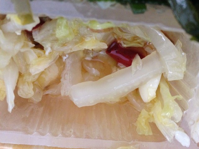 栗子鲜肉粽,一袋有2个,气体已经抽空,摸着硬极了。用的微波炉加热,担心爆炸,还是剪了个口子,导致碗油油的。粽子很鲜美,颜色淡,感觉是用了生抽。板栗只有一个,个别地方发黑,不新鲜。鲜肉的精肉部分掐牙齿。…查看更多