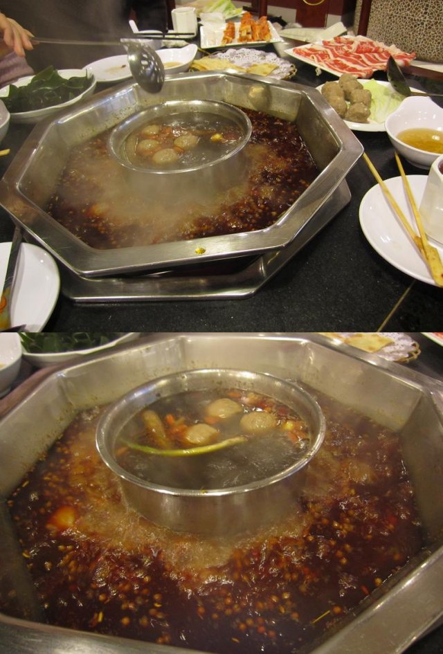 上星期五趁着天气冻冰冰,跟朋友去消耗了 【重庆孔亮火锅超值套餐】肥牛,骨肉相连,毛肚,牛肉丸,海带,金针菇,娃娃菜。 山珍鸳鸯锅,中间的山珍汤底好好喝啊,浓浓的菇菌味[馋嘴] 外面的辣锅我觉得不够香也不够麻,应该是我重口味吧。服务严重跟不上,由于加点了一份鸭血,所以要另外埋单,结果工作人员竟然等到我们起身穿外套准备离开才匆匆忙忙过来收钱。茶壶加水也是叫半天都没人理,本来以为我们团购的才会如此,结果坐在我们旁边一桌点餐的客人也说这里的服务超级差,看来要好好改善啦,来广州做饮食生意服务不能马虎哦,没有星级服务至少手脚麻利勤快啊,连这都做不到的话就不必来啦。…查看更多