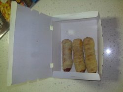 达美乐比萨这家店有堂吃、有外卖也有外送,外送基本都是网络点餐的。个人比较喜欢他家的小吃热狗面包卷,面包卷一个个大小适中,每个卷内都包裹了根脆皮香肠,香肠入口外脆里嫩,还有汁水,外面的面包卷不是很厚,搭配在一起非常完美好吃。…查看更多
