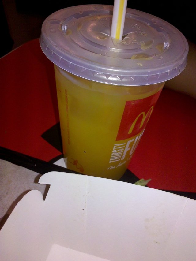 在火车站或是飞机场附近的快餐店买的套餐价格都比市区要贵上一些,没有超值午餐就点了一份汉堡一杯果粒橙,他们家的果粒橙就是外面美汁源的那种,不过是没有颗粒状的,虽然不是鲜榨的但是鉴于少喝碳酸化饮料的前提下,他们家的果汁还是不错的选择。…查看更多