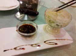 今天和男朋友一起去威海路边上的上海展览馆参加婚展,中午走了几步就看到这家甜蜜蜜了,觉得名字挺喜庆就进去吃了,点了双拼烤鸭河粉和生牛肉炒饭,炒饭有点油,味道还行,就是再多点肉就好啦,后来上上来的奶茶还不错,热的比冰的要便宜6块钱,感觉不像是平时喝的兑出来的那种,烤鸭河粉双拼的量很足,有7,8块带皮的鸭肉,肥而不腻,味道也不错,还用了点评团购的券,折扣了20多元。…查看更多