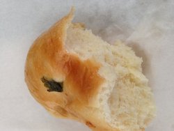 大众赠送的10元全额券买了这家的代金券,周末早上去的,柜台空了大半,选了很久买了这个面包。面包大概只有100g,不大,外表油油的,上面有葱花,烘烤过后葱花都干了,尝了一口,咸咸的,这葱花还真不简单。…查看更多