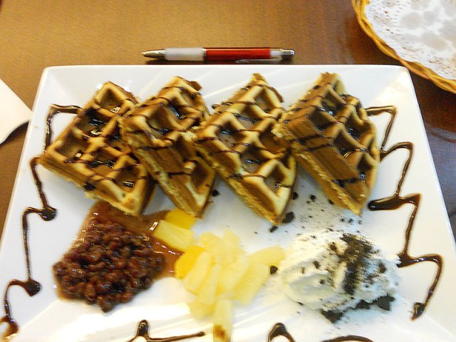 呢间响天河时尚里边众多噶食肆中最明显噶标志就系门前有两个卡通公仔,餐厅可能系同游戏公司合作噶,店里度度亦都可见公仔。店员比较热情,态度非常好。 我地入去噶时候就得店员冇其他客,过咗半个钟头先有三三两两噶客,貌似生意并唔多旺。食噶系水果松饼,28蚊一份,有D出乎意料,好大份。有四件咁多。而且配咗红豆椰果,奶油朱古力酱,好丰富。食又唔会话好甜,如果饼再软D就更加完美啦。一般西餐厅好少有咁大份量噶出品,呢个实属难得啦。走果时仲送咗张10蚊噶抵用券,下次来食系无限制使用噶。环境卫生呢D都几好。有免费WIFI …查看更多