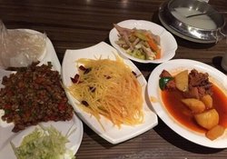 新疆老同学带我吃的这家餐厅,她还和里面的新疆服务员对话呢,虽然说的我也听不懂,印象中新疆菜口味都会挺重的,其实不然新疆菜也是很能让人接受的,拉条子其实就是一种手工面食,吃起来非常的有弹性,还蛮喜欢的,我们一直认为大盘鸡最好吃,上桌没一会就吃掉一半,里面的土豆都很鲜的,特别好吃,如果有大盘鸡面我会再点上一份。…查看更多