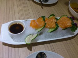 店不大,蓝白色的基调蛮简洁的。点了鹅肝寿司,37元,真心不错,入口即化,很细腻。三文鱼腩寿司,27元,三文鱼肉很饱满。烤缘边柠檬醋寿司,27元,有点清淡。牛肉乌冬面,42元,乌冬面很Q,汤有些微甜。吉列猪排,28元,量还可以,炸的酥脆。串烤牛舌,18元,这个一般了,性价比不高,也不是很嫩。芒果冰激凌,27元,这个很好吃,芒果很清香,推荐的。PS:他们家的芥末不是很辣,酱油偏咸了。总体来说价格有点小贵,菜品品质和口味还是不错的。…查看更多