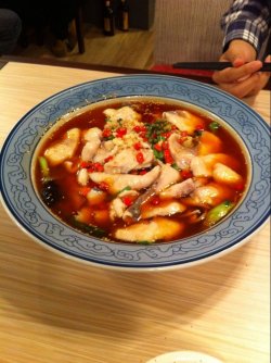 看网上说是一家很正宗的湘菜馆,不过去的时候是下午2点左右,想吃的剁椒鱼头师傅已经休息了,所以点了水煮鱼。鱼肉不是很多,里面配菜放的是豆腐丝和豆芽,鱼肉应该是过过油的,金黄色的,不知道是不是师傅刀工的问题,鱼的小刺很多,好像是片鱼的时候切断的,吃的时候要非常小心。猪尾巴非常香,里面干辣椒红椒青椒都有,吃起来像猪头肉。…查看更多
