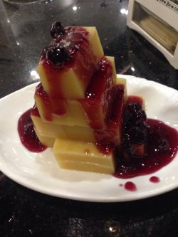 吃烤鱼这家店是比较出名的。烤鱼的口味很多,今天去听说还研制了蜜桃口味的。不过没有点,还是叫了平时爱吃的椒香口味的,加点配菜莴笋,藕片挺好吃的。这次点的甜点比较多,一份龟苓膏,一份蓝莓黄豆糕,一杯西柚汁。鱼烤完之后就缩水了,2个人吃一条刚刚好。…查看更多
