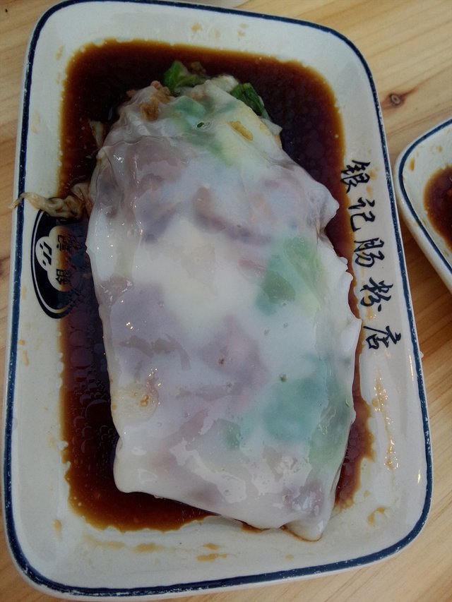 每次来都会点一个肠粉一个粥,绝对不比吃饭便宜。牛肉肠我最中意吃,看图可以清晰知道,银记的肠粉皮超级薄,里面的肉很多,看的到的,皮薄爽口,很滑,很香米浆的味道,牛肉好味,又软又入味。酱油偏甜,不会太咸。烧骨粥,也是最爱,特点系降火,可惜始终无自己煲咁多料,烧骨只有几块,还是没肉的,胜在粥底够绵滑。…Read More