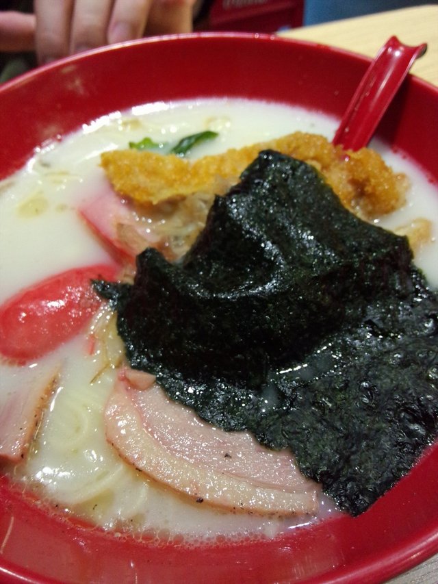 辣辣寿司分店挺多的,寿司价钱也不贵,1.2块钱一件寿司,味道还是不错的。这个是15元的鸭胸拉面,肉很多,烟熏鸭胸,肠仔,大块紫菜,还有玉米粒,汤底还算浓稠,拉面比较有弹性,鸭胸肉厚,很淋,有淡淡的烟熏味。紫菜还没泡开时,很脆,泡开后,汤底有淡淡紫菜香。…Read More
