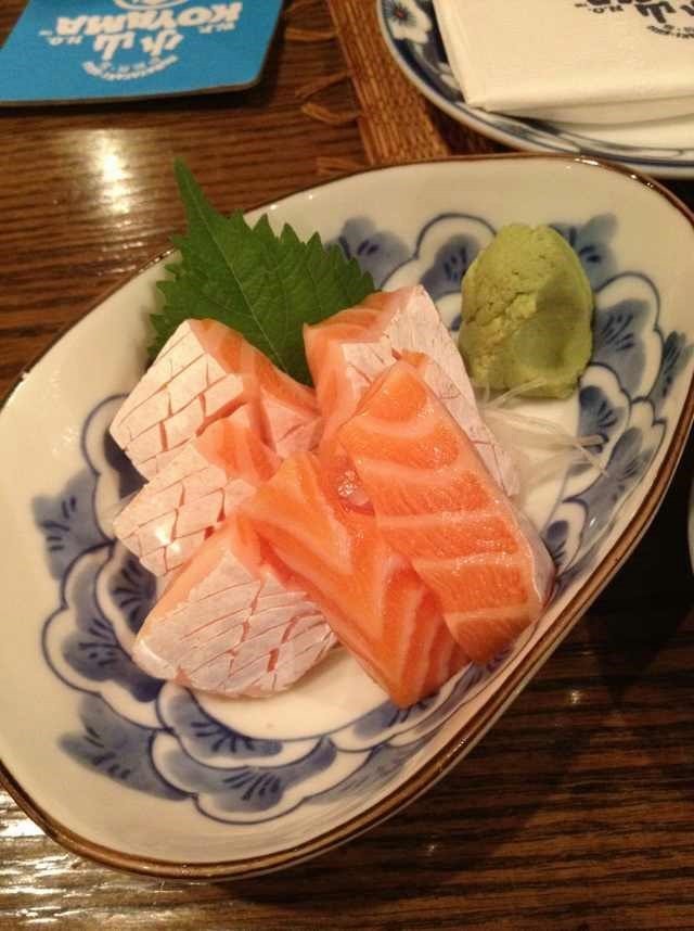 小山料理,打着正宗日本料理的旗号,价钱有点贵,但出品的东西确实新鲜,一吃就知道了,这个三文鱼腩刺身,贵,而且只有几片,所以每一片都是细嚼慢咽,慢慢品尝它的味道。油脂肥而不腻,十分香滑可口,很甘香,肉质弹牙,芥末味道够辣,最能调动三文鱼的鲜味。很正。其他的寿司都是手握的,一小块,方边、便女孩子一口一块,饭粒软硬酸度适中,配上各款刺身,非常好吃。…Read More