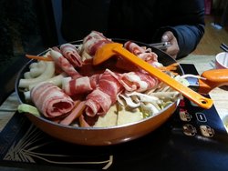 这家店是团购的,不过团购价也就便宜了10元。第一次吃这种韩国的芝士年糕火锅,本来是挺期待的,听朋友说年糕里面流出芝士芯来很好吃什么的。但是真正尝到,味道也就这样吧,火锅看看满满一大盆,其实实质性内容不多,两人吃感觉份量还稍微偏少了那么一点点。我比较喜欢吃牛肉,芝士年糕,还有豆腐,可这几样都挺少的。方便面的量倒挺多的,整个火锅主要就是靠甜辣酱来调味,吃到后来就有点腻了,没有层次感。难得吃吃也算是异国风情吧。…查看更多