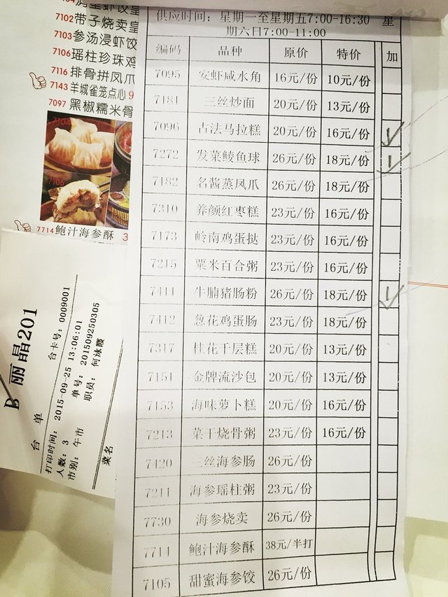 闲日过来渔民新村饮中午茶,四楼大厅居然坐满,生意真系火爆,只能在一楼就坐。原来周一至周五7:00-16:30、周六日7:00-11:00这些时间段,都有部分点心是特价的,价格都不超过20元,相当经济实惠,点了几款,份量也没有因为特价而缩水。【鸡蛋散】整得几松脆,甜度适中。【牛腩猪肠粉】牛腩焖得好软好入味,猪肠粉吸引了牛腩的香味。【古法马拉糕】好大一份,蒸得好松软、淡淡的香味。【安虾咸水角】其实里面只有虾米,这个比较普通。【发菜鲮鱼球】真材实料的鲮鱼肉,没有太多粉,很爽口弹牙。茶市有优惠还是不错的,可是现在还要加收服务费,但不见服务有提升。…查看更多