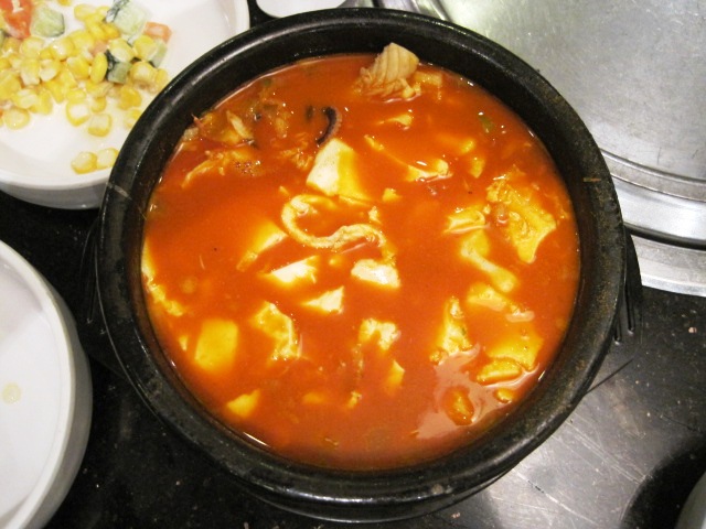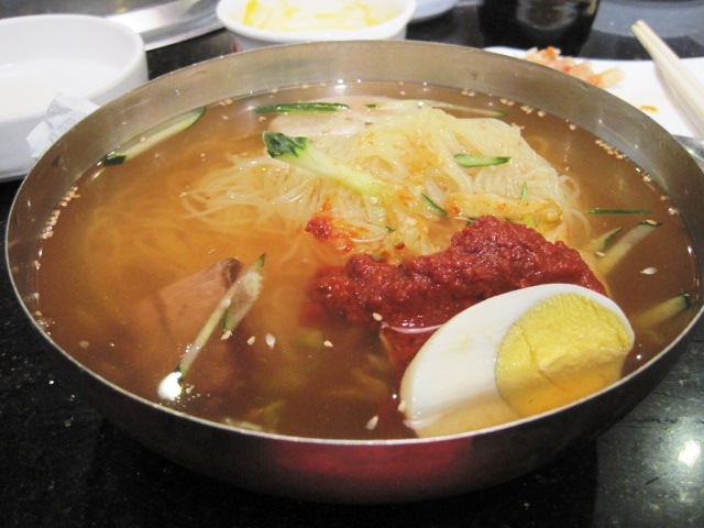 在汉拿山吃午餐或者简餐还是很实惠的·因为不管你是吃套餐还是烤肉·店家还是会送你南瓜粥和餐前小菜··我们虽然只要一个朝鲜冷面和海鲜豆腐脑汤(配饭)·但感觉吃的很满足··眼前依然摆了一大堆小盘子、小碗、色彩斑斓·吃的人很开心··两个人买单才四十多块···太实惠了···…查看更多
