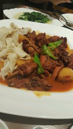想了很久的耶里夏丽终于来吃了呢,环境非常的具有异域风情哦,很多新疆的本土的服务人员,还有跳舞节目可以看,大盘鸡特别的好吃,很实惠,量大,鸡肉很鲜嫩,香料挺多的,但是都是一些平时不常吃的香料,烤馕特别好吃,外皮很脆很甜,菜心是朋友推荐的,主要是觉得肉吃的太多了,想去去油。…查看更多